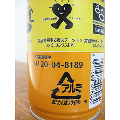 缶に「災害用伝言ダイヤル「171」の使い方」が書かれている!