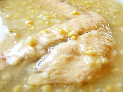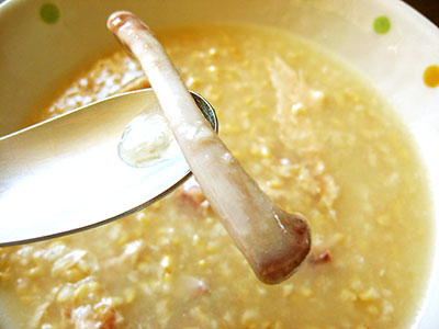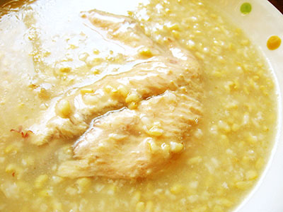 大きな手羽先が丸ごと入ってる。(@v@;)ホー  玄米は、白米よりビタミン・ミネラル・食物繊維を豊富に含むため、 健康食品として用いられているそうです。
