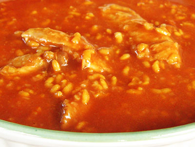 玉ねぎ、にんにく、ローレル、トマトが入り、香辛料が効いている。