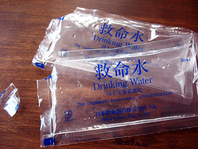 実際飲んでみました。 チョッとビニールの味がします。 「50mlって、見た目少ないかな?」って、思ったけれど コップでごくごく飲むのとは違い、パックのまま飲むと出が少ないからか? 5、6口分くらいあるように感じます。 貴重な飲料水。