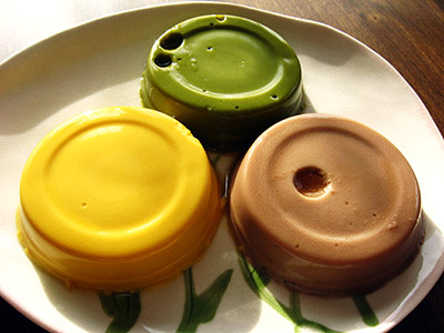 左から、「ほうれんそうのプリン」「かぼちゃのプリン」「あずきのプリン」