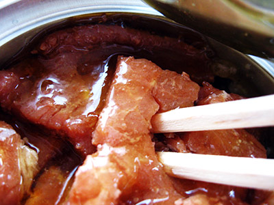 ↑こちらは「豚肉のしょうが煮」 割り箸で簡単に崩れます。