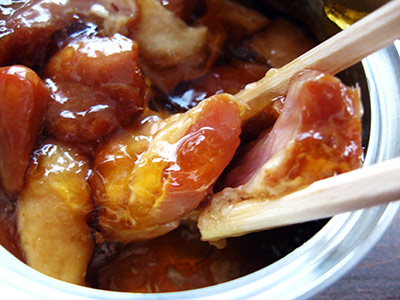 ↑こちら「鶏肉のうま煮」は、持ち上げようとしただけで、ほら!この通り。
