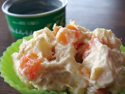 1cm角位のさいの目ポテトとニンジンに、ツナと酸味の少ないマヨネーズを合えた