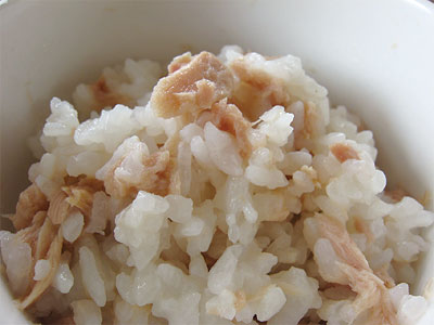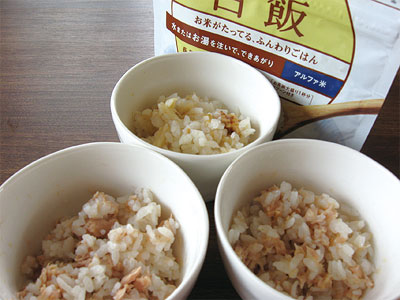 ツナも汁が多めだからアルファ米を戻す時は、水加減に注意してね。(*^−')ノ