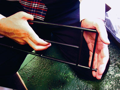 両端の金具の高さ、奥行きを同じ場所になるように気をつけて固定をするだけ。