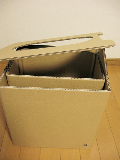ダンボールのパーツにアルファベット表示があるので、指示どおりに組み立てるだけ。