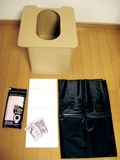 そこで、コレ!   「組立簡易トイレ」の出番です!!
