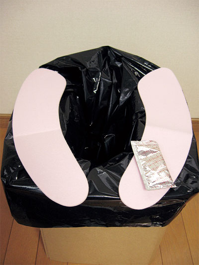 最後に、汚物袋と凝固剤、便座シートをセットして出来上がり♪