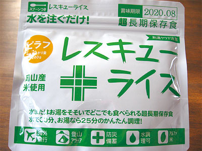 超 長期保存のアルファ米!「レスキューライス」