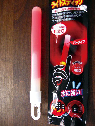 HOME > 防犯・防災グッズの体験レポート >「光る! 非常用ライトスティック」 |