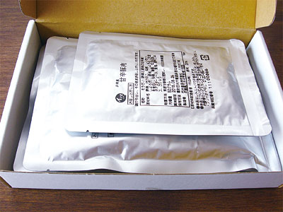 玄米がゆが2 種計3 袋、おかずが2 種各1 袋入っています。
