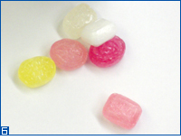 砂糖、 水飴、 濃縮果汁(いちご、レモン、オレンジ、パイン、りんご、メロン、すもも)、 酸味料、 香料、 着色料(紫コーン色素、パプリカ色素、カロチン、紅麹、クチナシ、紅花黄)