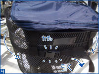 このひったくり防止バッグをカゴに装着すれば、警戒していることを外からひったくり犯にわからせることができる上、実際にバッグを引っ張られても、カゴにしっかりとまっているので取られることがありません。