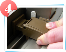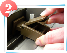 つまみを持ち上げます。正面のゴム張りになっている面が窓サッシをおさえます。