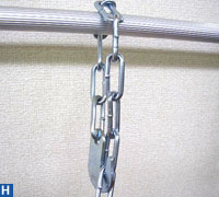 使い方は手摺に鎖を掛け長さを調節してフックを鎖の輪っかにかけます。後は窓枠タイプと一緒です。