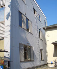 実際は、足の中央を横桟に掛け、手で横桟をしっかりと握り、自分の体を非難はしごに密着させるように急がず慎重に昇降してください。