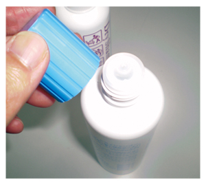 容器の口もとを頭皮に近づけ、頭皮と髪全体にゆきわたらせます。