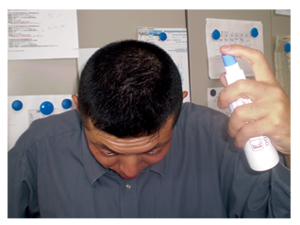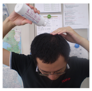 頭皮と髪全体にスプレーし、軽くマッサージした後、タオルなどでふきとります。