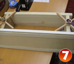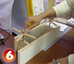 このハンドルを側板のオニメナットにクルクルと差し込んで本体の組み立ては終了。(6)(7)(8)