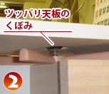 (2)ツッパリ天板のくぼみを高さ調節ハンドルの上部に合わせます。