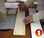 まず前板、背板の計8か所の穴にボンドを少量注入し、側板のダボを穴に差し込んで固定します。(1)(2)(3)